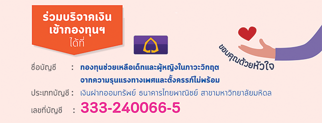 ให้ความช่วยเหลือเด็กและผู้หญิงที่ประสบภาวะวิกฤตจากความรุนแรงทางเพศและท้องไม่พร้อม ที่ไม่สามารถเข้าถึงความช่วยเหลือในระบบบริการสังคม และกองทุนต่าง ๆ หรือสิทธิสุขภาพในระบบปกติได้